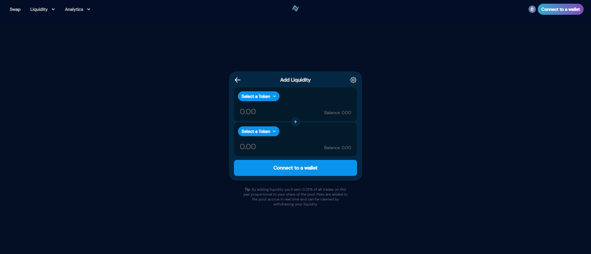 An exchange is a place to buy/sell tokens, but in order to do that, it needs one basic thing: tokens (otherwise known as liquidity). Traditionally, centralized exchanges, like Coinbase, provide and manage this liquidity. On Nevellus, the liquidity is provided voluntarily by its users. In return, Nevellus rewards those who provide temporary access to their tokens with a share of the 0.25% fee charged to traders of the respective token pair, proportional to the amount of liquidity they added to the pool. This option could be a great opportunity to earn extra yields on tokens that are just sitting in your wallet.